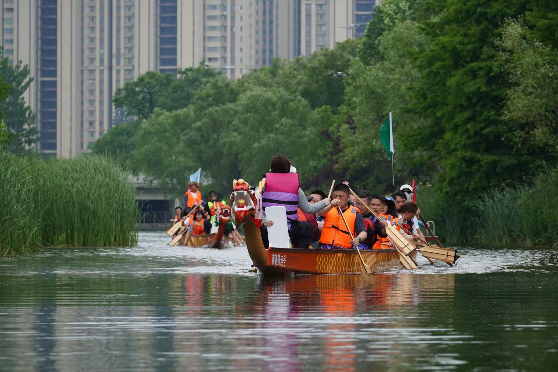 比賽過程中,各支隊(duì)伍你追我趕,競爭激烈。有的隊(duì)伍起初稍顯落后,但隊(duì)員們毫不氣餒,迅速調(diào)整節(jié)奏,憑借著頑強(qiáng)的毅力和默契的配合,逐漸迎頭趕上;有的隊(duì)伍一馬當(dāng)先,始終保持領(lǐng)先優(yōu)勢,展現(xiàn)出強(qiáng)大的實(shí)力。在龍舟競技中,隊(duì)員們深刻體會到了團(tuán)隊(duì)合作的重要性。只有心往一處想,勁往一處使,聽從指揮,相互配合,才能讓龍舟快速前進(jìn)。每一次劃槳的力度、速度和方向都需要團(tuán)隊(duì)成員高度一致,任何一個(gè)人的失誤都可能影響整體的節(jié)奏。